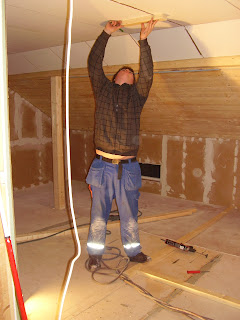 Yläkertaan tuli Pekka aloittelemaan väliseinien laittoa, jotta sinne syntyisi siis kaksi erillistä makkaria :)